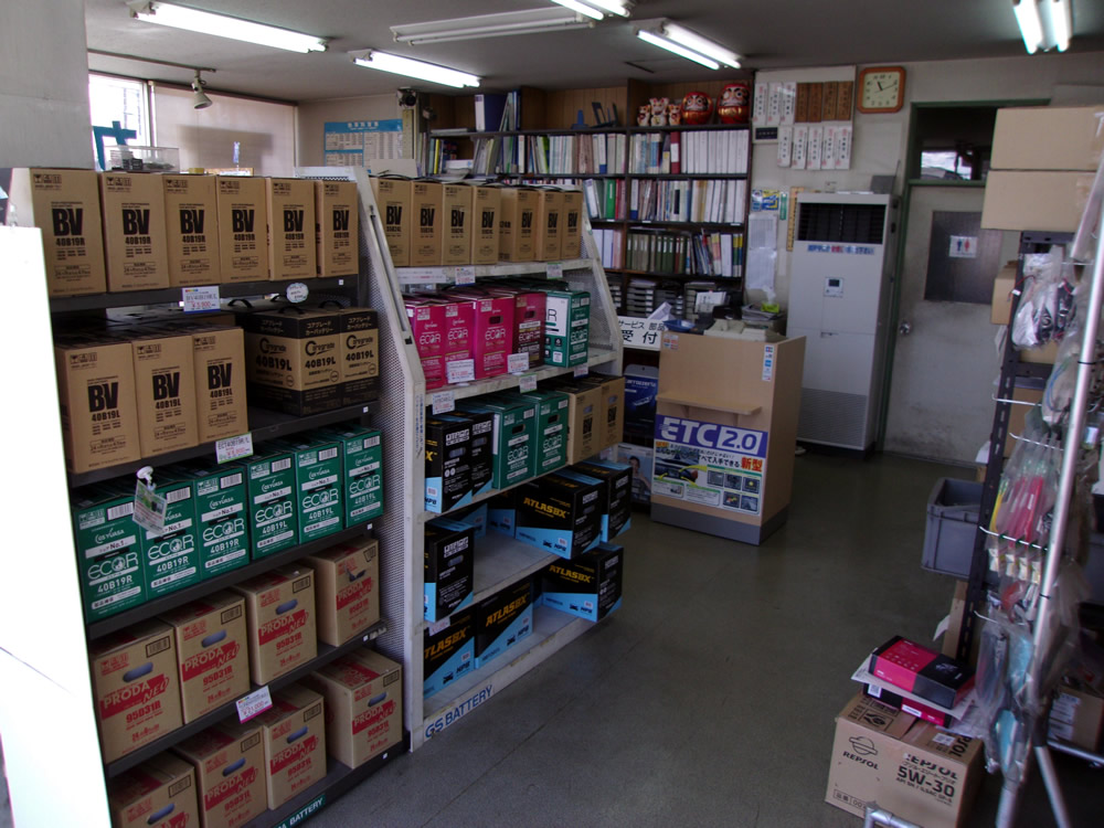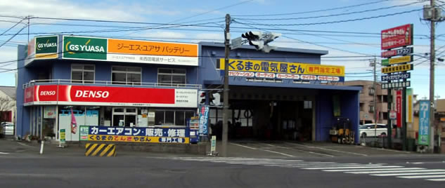 | くるまの電気屋さん の看板が目印 |
