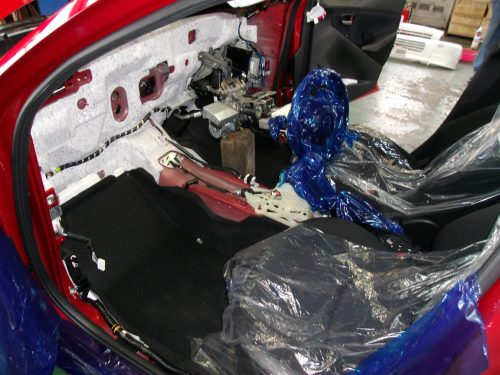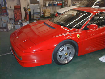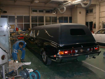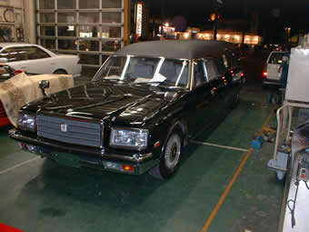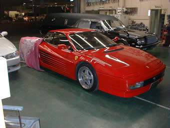 同時期に入庫したセンチュリーロング。横はフェラーリ。何故ロングなのかと言うと・・・知っている人は分かる・・・。人間を横に乗せて走ります。この手の車は後部座席を取って使用することが多いのですが、この車は後部座席もしっかりと人が乗れます。その為、後ろが長くなったと・・・。運転手がバックするとき見えないのでバックカメラをつけろとの依頼でした。