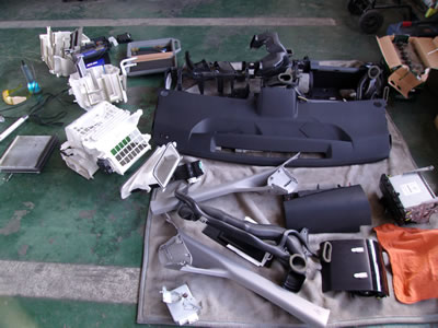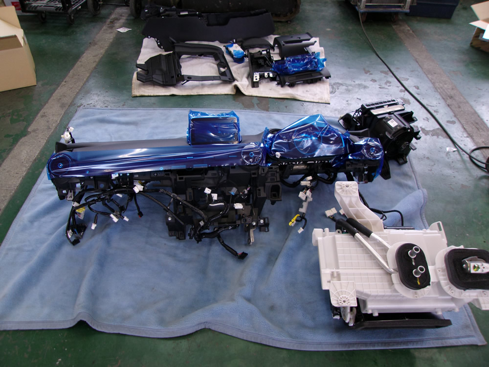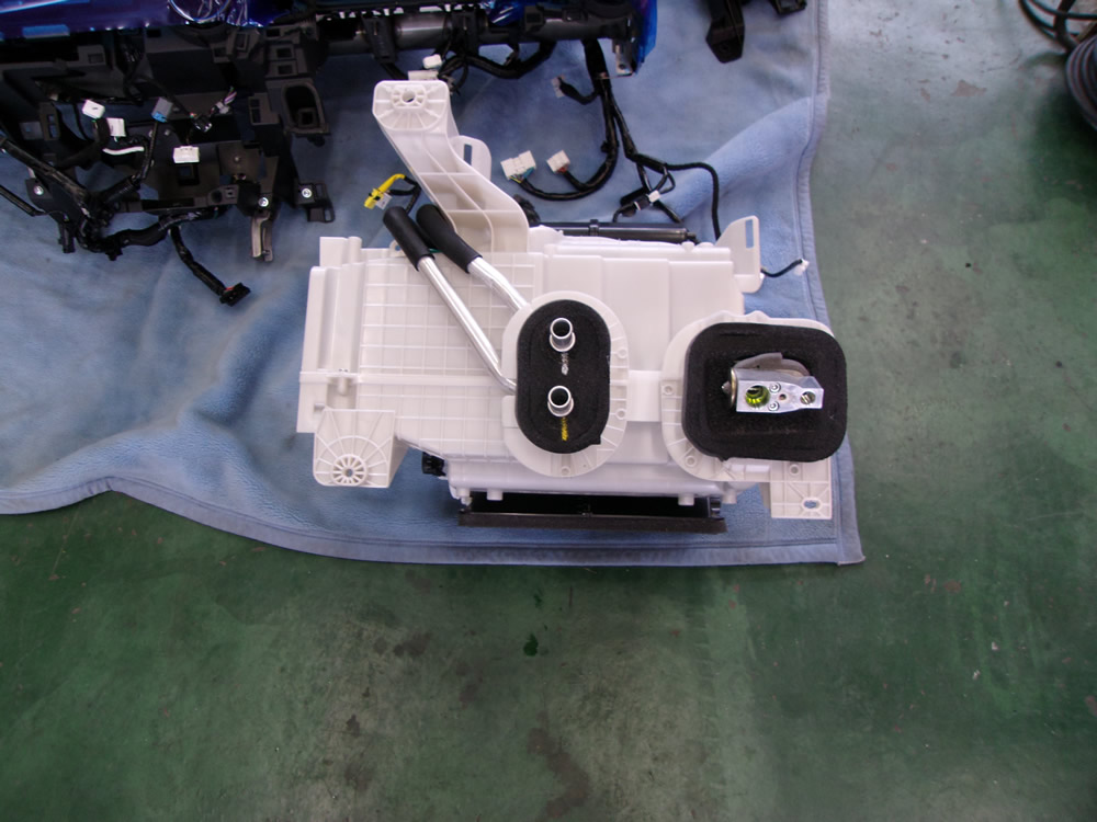 最近更新していないので、非常に厄介で、修理が多い車両を紹介します。アクセラのエアコン修理です。壊れた部品はエバポレーターと言う部品。エアコンのガスが無くなるという事で、確認の為に蛍光剤を封入。紫外線を当てて、エンジンルームを確認しても見つからず、最終的にエバポレーターという結論に達し、今回、部品交換となりました。ガスを抜いて、インパネ周りの部品を取り外し、インパネを外す。その後、エアコンユニットを外し、エバポレーターを確認。目視で分かるほど、ガスの漏れた形跡がエバポレーターにあります。マツダ系はエアコンのガス漏れ修理はこのエバポレーター交換が多いです。アクセラ、CX-3、CX-5、デミオ。ここらへんは要注意ですね。