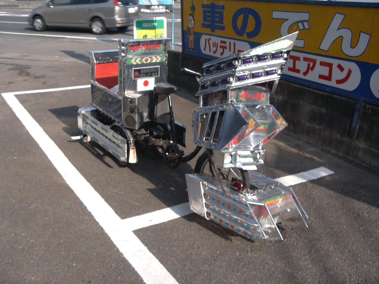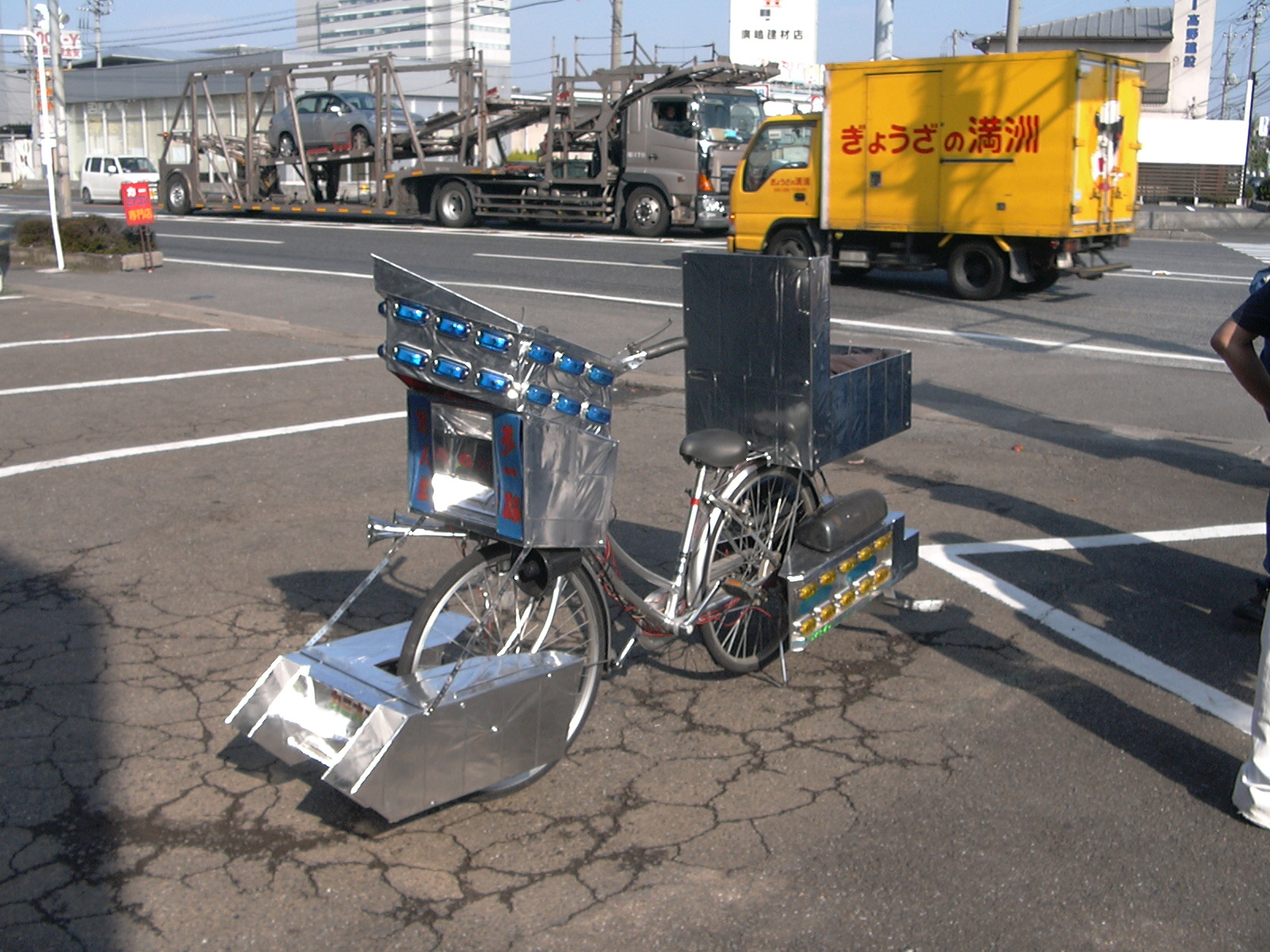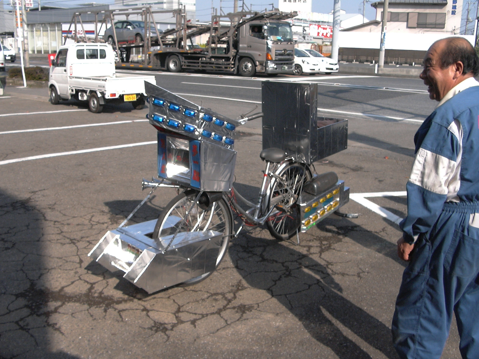 今は滅多に見られない?デコチャリのご紹介です。オーナー様は川越まつり用に作成したとのことです。壱號機、弐號機とあり、今回は装飾用のランプをあさり?に来ましたw