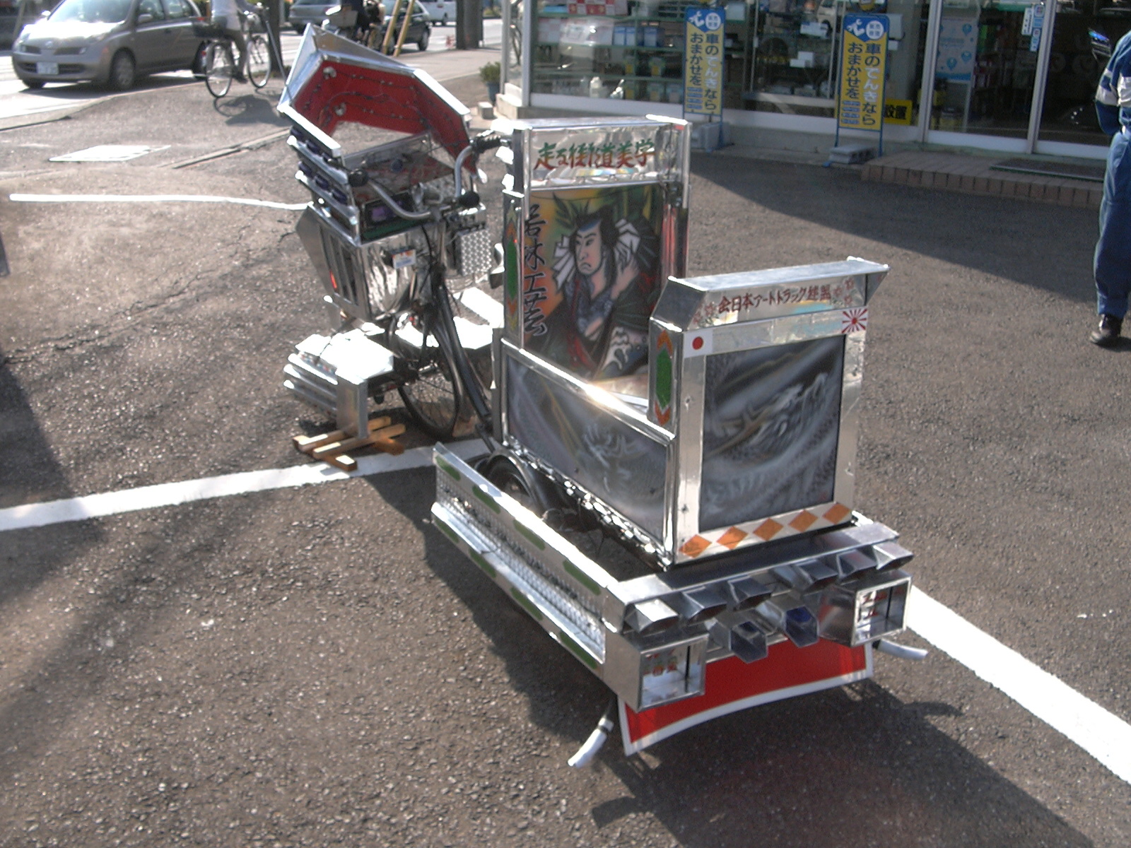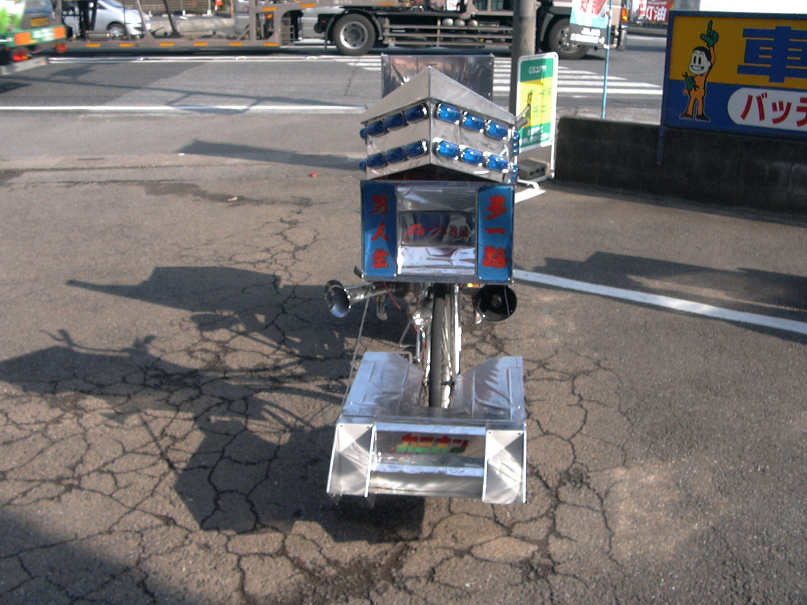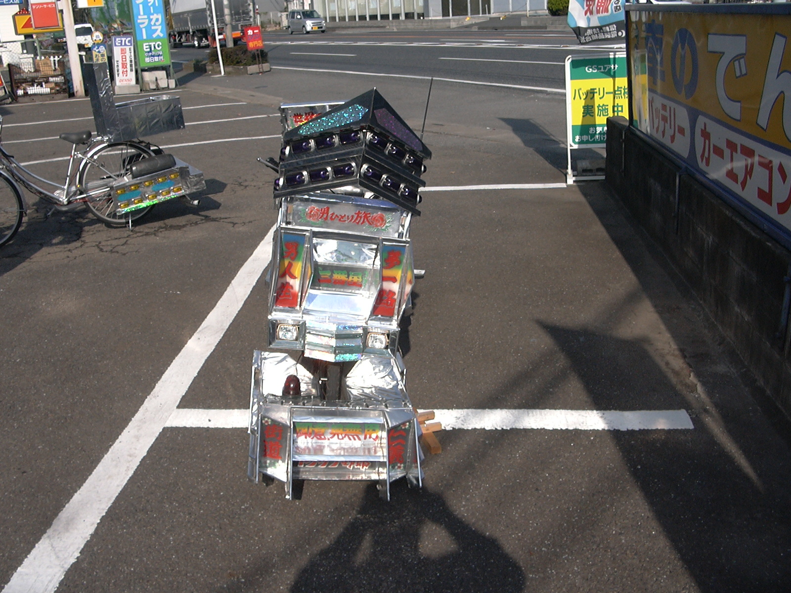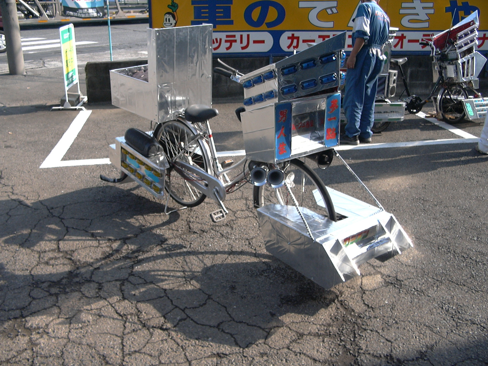 今は滅多に見られない?デコチャリのご紹介です。オーナー様は川越まつり用に作成したとのことです。壱號機、弐號機とあり、今回は装飾用のランプをあさり?に来ましたw