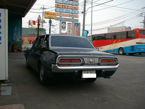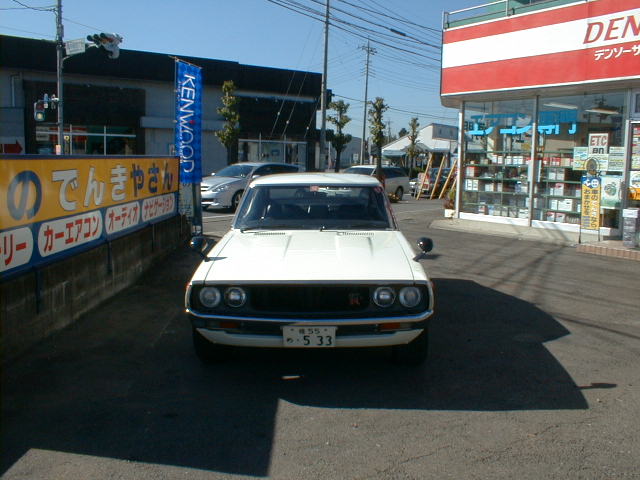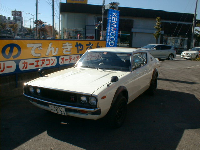 なぜ、ケンメリなのかというと、画像があるのがこれしかなかった。っていうのが現実です。 しかし、驚くなかれ、このケンメリ、ワンオーナー、無修理、ノーレストア車なのであります。 めちゃくちゃ綺麗です。 オーナーの方に綺麗にレストアしてありますねっていったら、そりゃそうだ!何も修理してない新品だからっていわれました。 えーっ !改めてみるとレストアしたような形跡なし、何でも九州の方でリフトに吊るして20年近く置いてあったそうな。 前のオーナーにしつこくせがんで譲ってもらったと話しておりました。 それにしてもすごい! 店の前を走っている車や建物からウソでないことがお分かり頂けるかとおもいます。