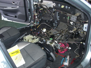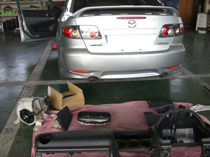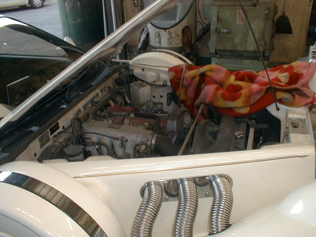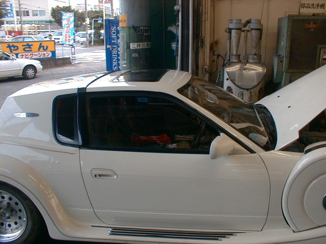 さて、今回はシルビア改?です。シルビア改って、エンジンをいじってあるとか、メカニカルな部分でなく、ボディです。w 画像を見るとシルビアと違うじゃんと思いますが、よーく見てください。フロントガラスのあたりとか、ドアのまわりをみると・・・どっかで見たことある車ではありませんか?はっきり言ってオーナーの趣味でしょう・・・。ハッタリの利く車種不明な車・・・ エンジンの画像は良く分かりませんね・・・すいません。載っているのはシルビアのエンジンです。 基本はシルビアですので、修理は国産のものと変わりません。 今回はAC修理&フォグランプ修理とゆうことで入庫しました。 前にフェンダー絞ってある分作業しずらいですw