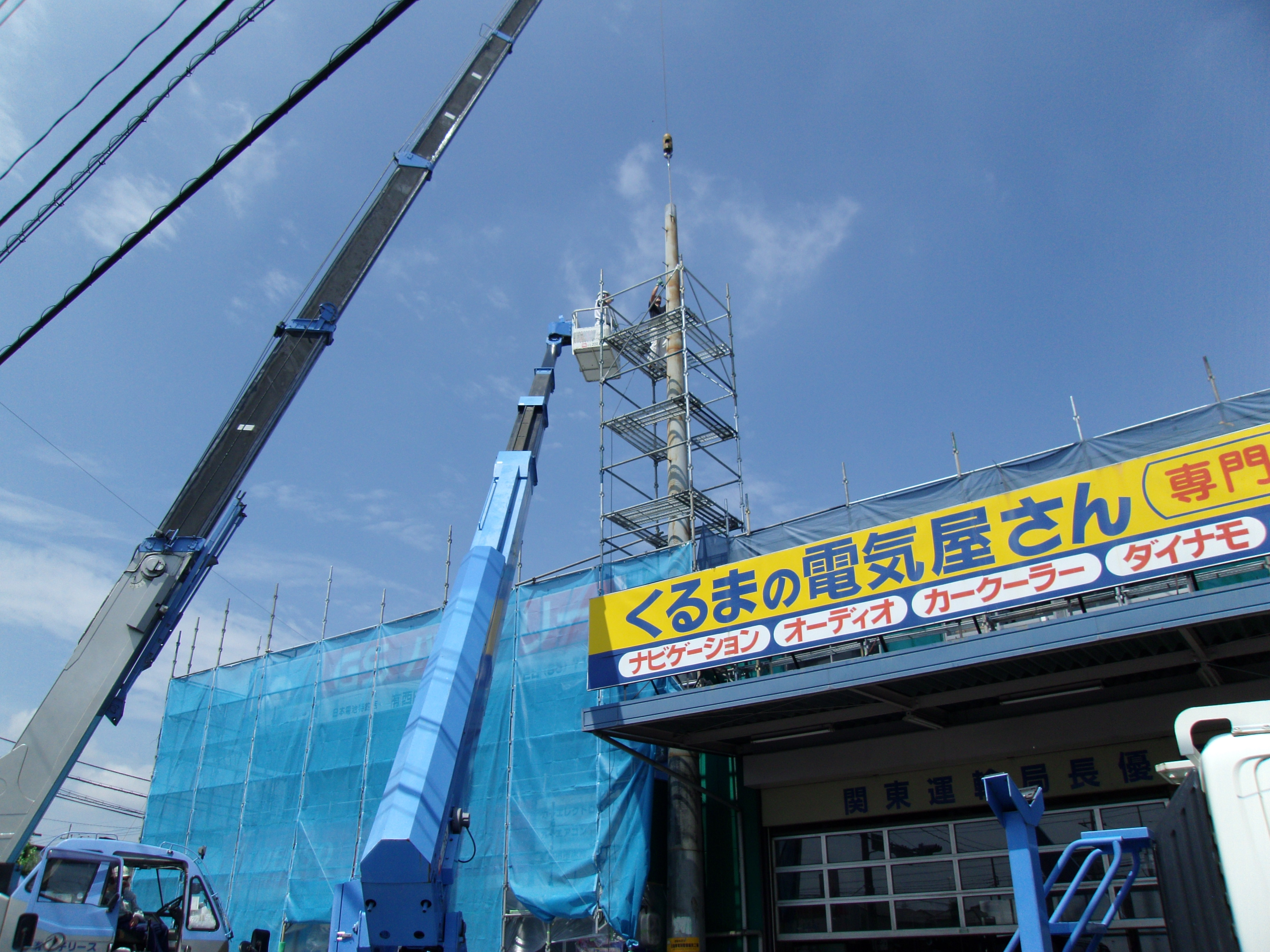 テーパー状の筒が何段にもなって刺さっている状態で、先端には蓋がしてあり、水などが入らないようになっている。 ある程度まで足場を組んで、その先は人が登って、作業したようです。