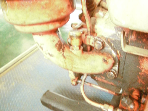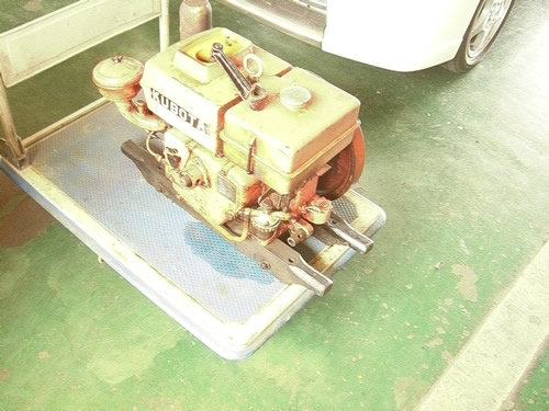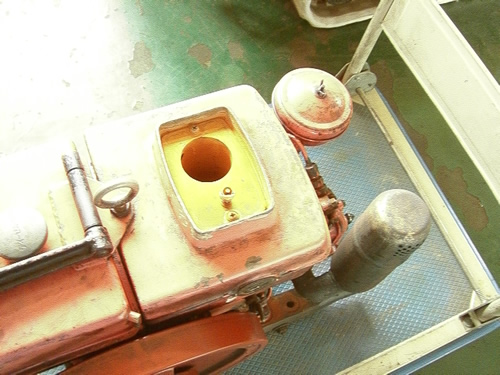エンジンのかかっている最中の冷却は空冷ではなく、上の穴から水を注ぎ、やかんのように沸騰させるみたいです。無くなったら、水を注ぐみたいな。もう一台はなんとか修理をして、出したのですが、撮影を忘れました。とにかく、始動できればOKみたいです。