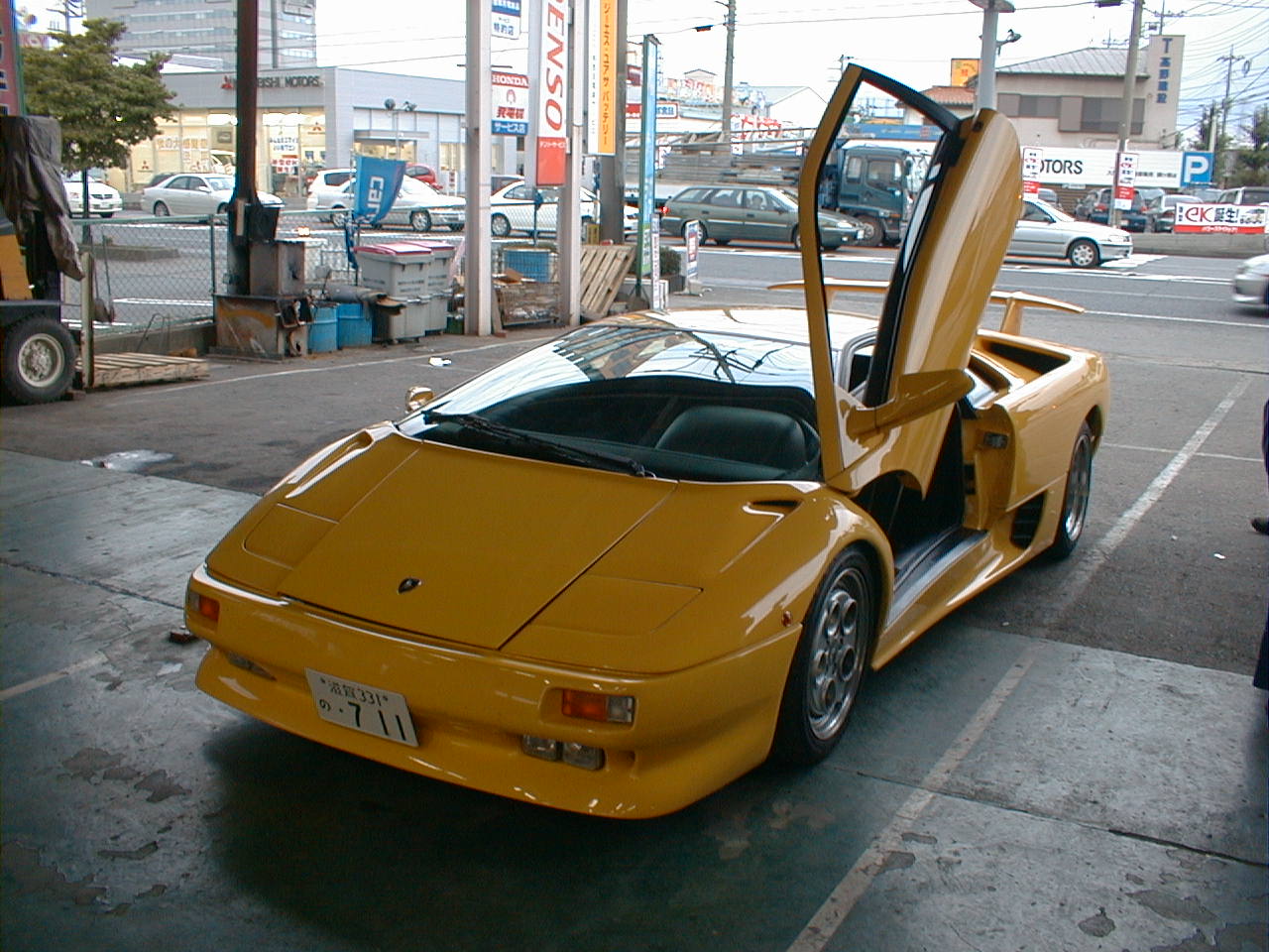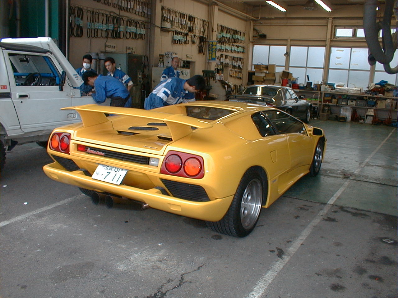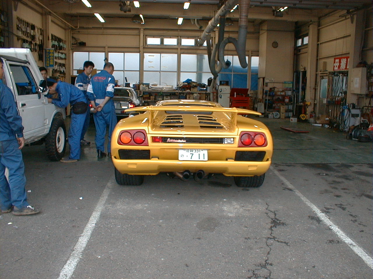 今回はディアブロです。修理はA/C修理&ナビの取付け。作りは簡単?なので車速もきちんと取出しました。 作業中、見学&写真撮影が多数・・・。 そのたびに作業は中断しちゃいました・・・。バックするときは見えないし、クラッチはめちゃ重。ハンドルはパワステ無・・・。神経減りました。写真はワラワラとうちの社員が見ております。隣のジムニーはエンジンをビート用に載せ変えてあるそうです。こっちも写真撮りたかったのですが、人が・・・。 ちなみにナンバー出しちゃっていますが、滋賀から京都ナンバーに変更してますから、出しても大丈夫だと思います・・・。