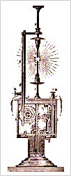 1836 年ダニエルはボルタの電池で極板の気泡を解決しました。それは 2 種類の電解溶液を使用し、 2 つの溶液が混合しないように素焼き板を使った のが、 ダニエル電池でした。この電池は当時発展してきた電信用の電源として広く利用され、電池の本格的な商業利用が開始されました。 |